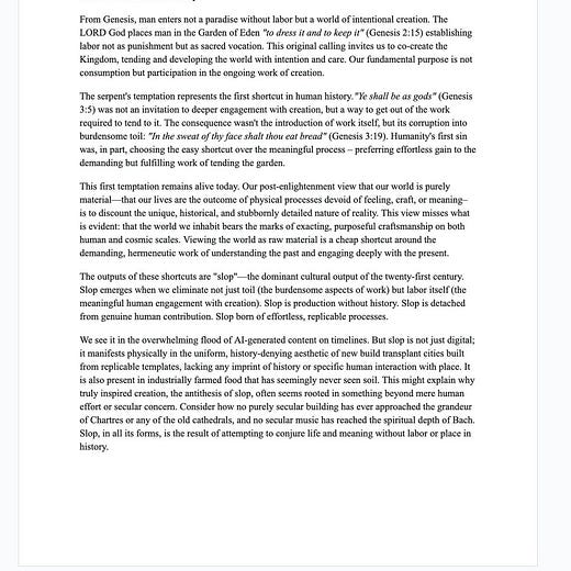 Slop is the opposite of sacred. It adds a pernicious form of frictionlessness that is the opposite of the sticky and the human. Sure, people might throw you a thumbs up on your LinkedIn post about your latest fundraise — and if you text enough people, you might even create a viral moment — but winning LinkedIn for a day is not the stuff of lore. Lore is what makes people remember you not tomorrow but 10 years from now. Lore is what separates the great companies from the truly generational.